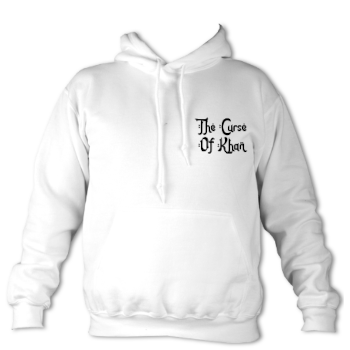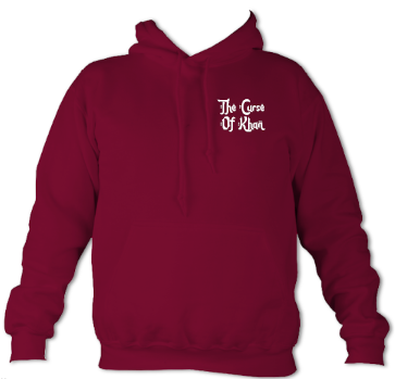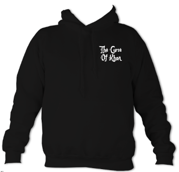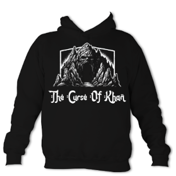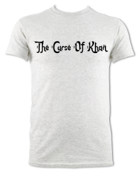 "The Curse Of Khan" text works well as a back or front print of a t-shirt or back print of a hoodie.