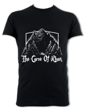 This design has become quite sought after, featuring a simple stacked The Curse Of Khan text on the front, with the `Lizard on a Chair` as the main back panel. Available in a range of colours.